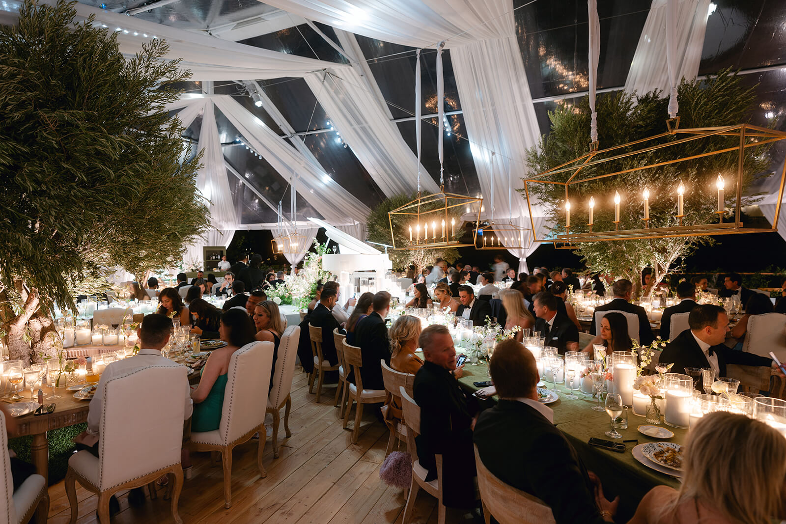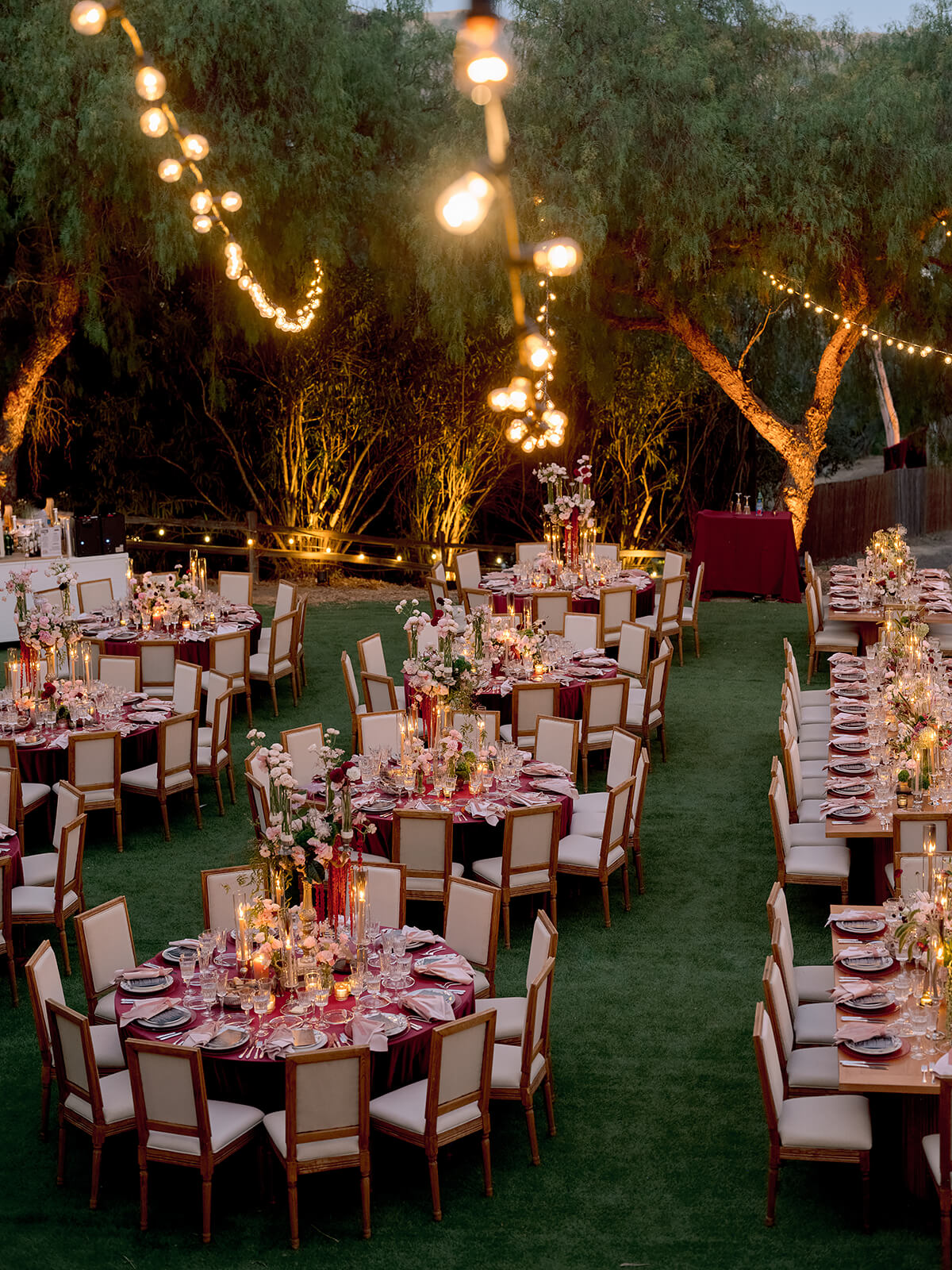 As the evening continued, bistro string lights created a warm, romantic glow for a night of dinner, dancing, and celebration under the stars — a fairytale brought to life with precision and heart.