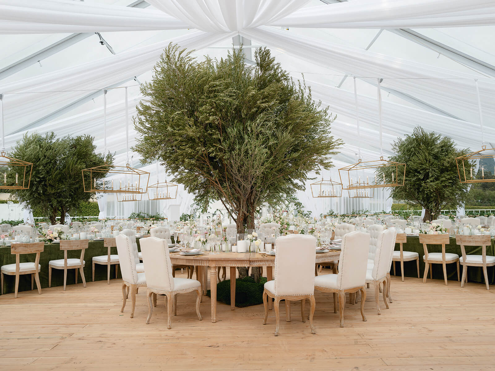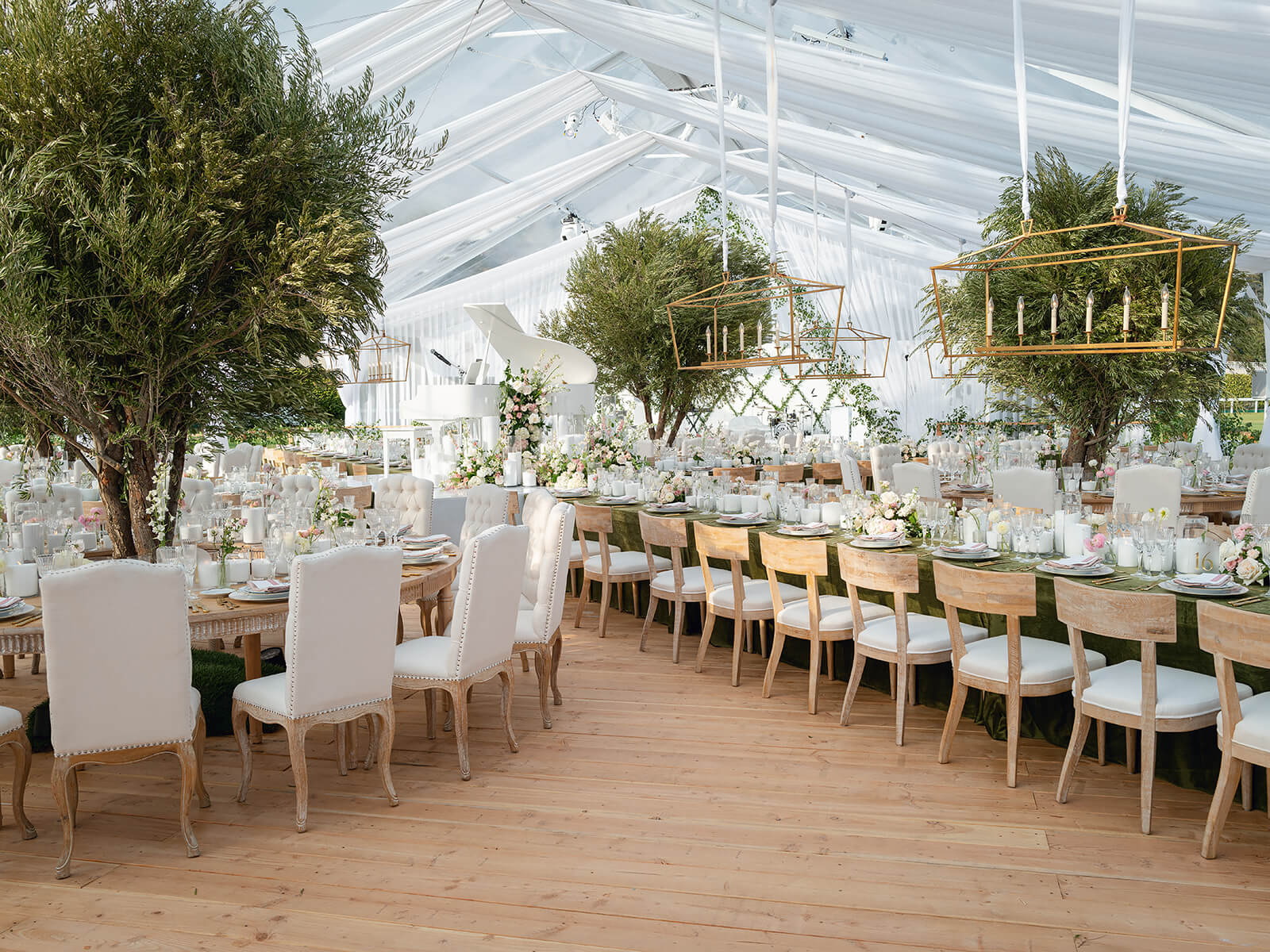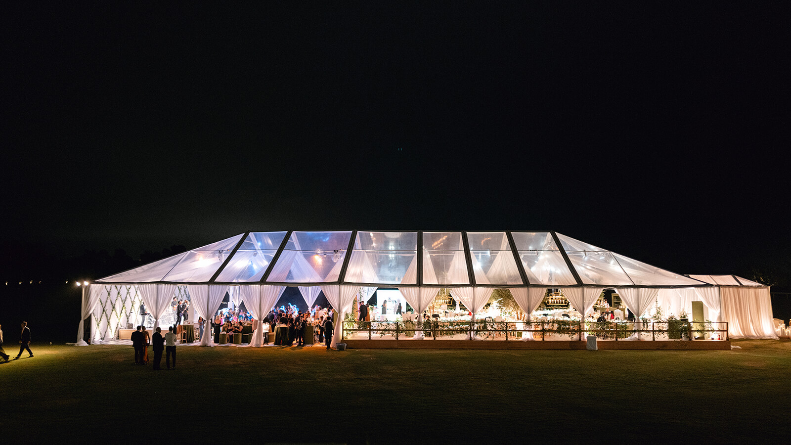 Set beneath the luminous Tidewater Tent, this wedding reception offered guests a breathtaking blend of nature and refined event design. The translucent tent fabric captured the evening’s natural glow, while custom blonde wood flooring and Tivoli Natural Chairs grounded the aesthetic in warmth and organic beauty. Every element — from the earthy palette to the seamless flow of the space — reflected a vision of effortless elegance.
